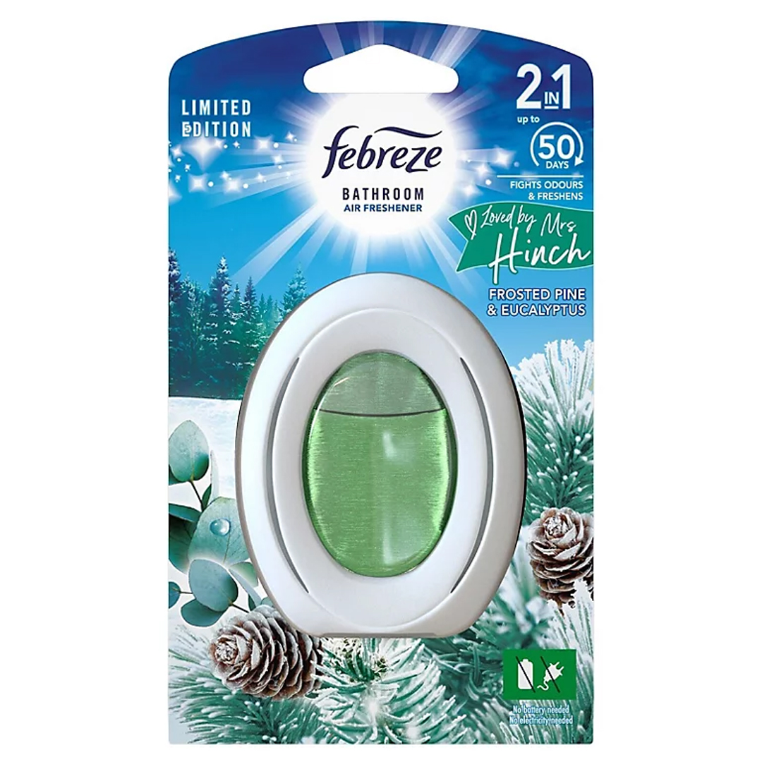 Our first continuous non-electric bathroom air freshener not only eliminates odours from the air but also prevents them from lingering on soft surfaces such as towels, bathmats and shower curtains. Febreze Bathroom uses its unique Odour Clear TM technology, delivering continuous freshness for up to 45 days, so your bathroom is always guest ready. With no electricity or batteries required, Febreze Bathroom is convenient and easy to use, available in a variety of scents.
